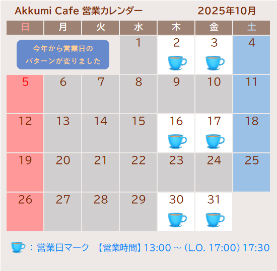 Akkumi Cafe 近日再開予定のお知らせです♪